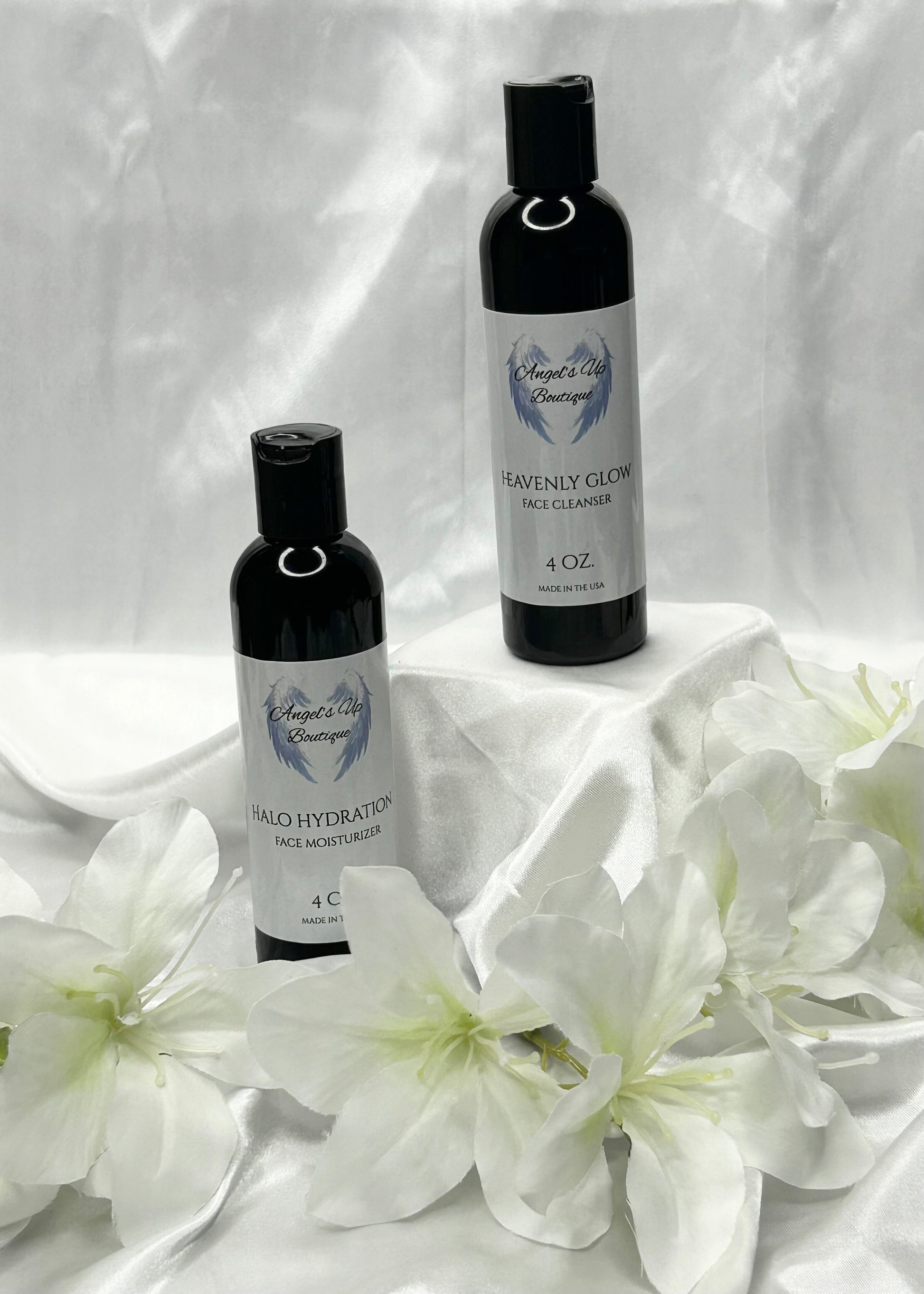 Discover the secret to luminous skin with our Radiant Duo Set, featuring our Heavenly Glow Face Cleanser and Halo Hydration Face Moisturizer. This carefully curated set combines the power of natural ingredients to cleanse, nourish, and hydrate, revealing your skin's natural radiance.